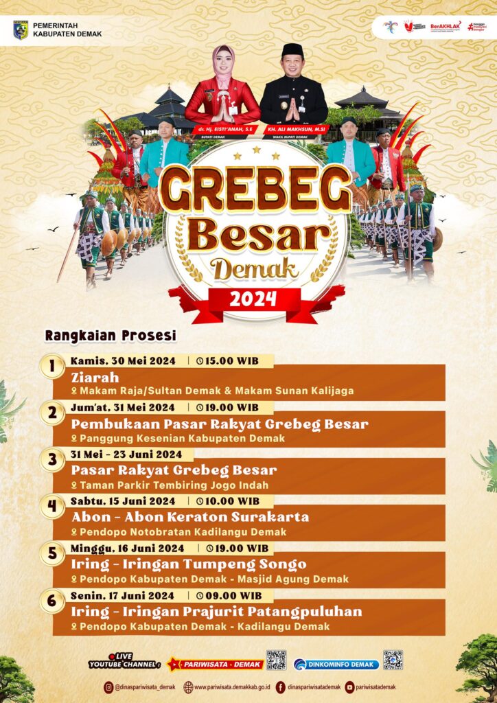 Demak – Suara riuh redam para pengungjung pasar rakyat memenuhi komplek Panggung Kesenian Demak pada moment peluncuran ratusan kembang api yang penuhi langit Tembiring ketika pembukaan Grebeg Besar dan Pasar Rakyat, Jum’at (31/5/24). Letupan Kembang api warna warni yang penuhi Tembiring dukung keramaian dan kemeriahan pembukaan Grebeg Besar dan Pasar Rakyat menjadi hiburan tersendiri bagi […]