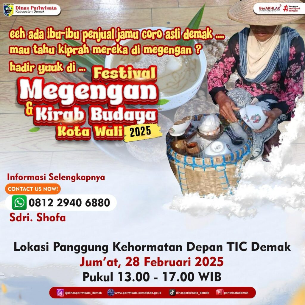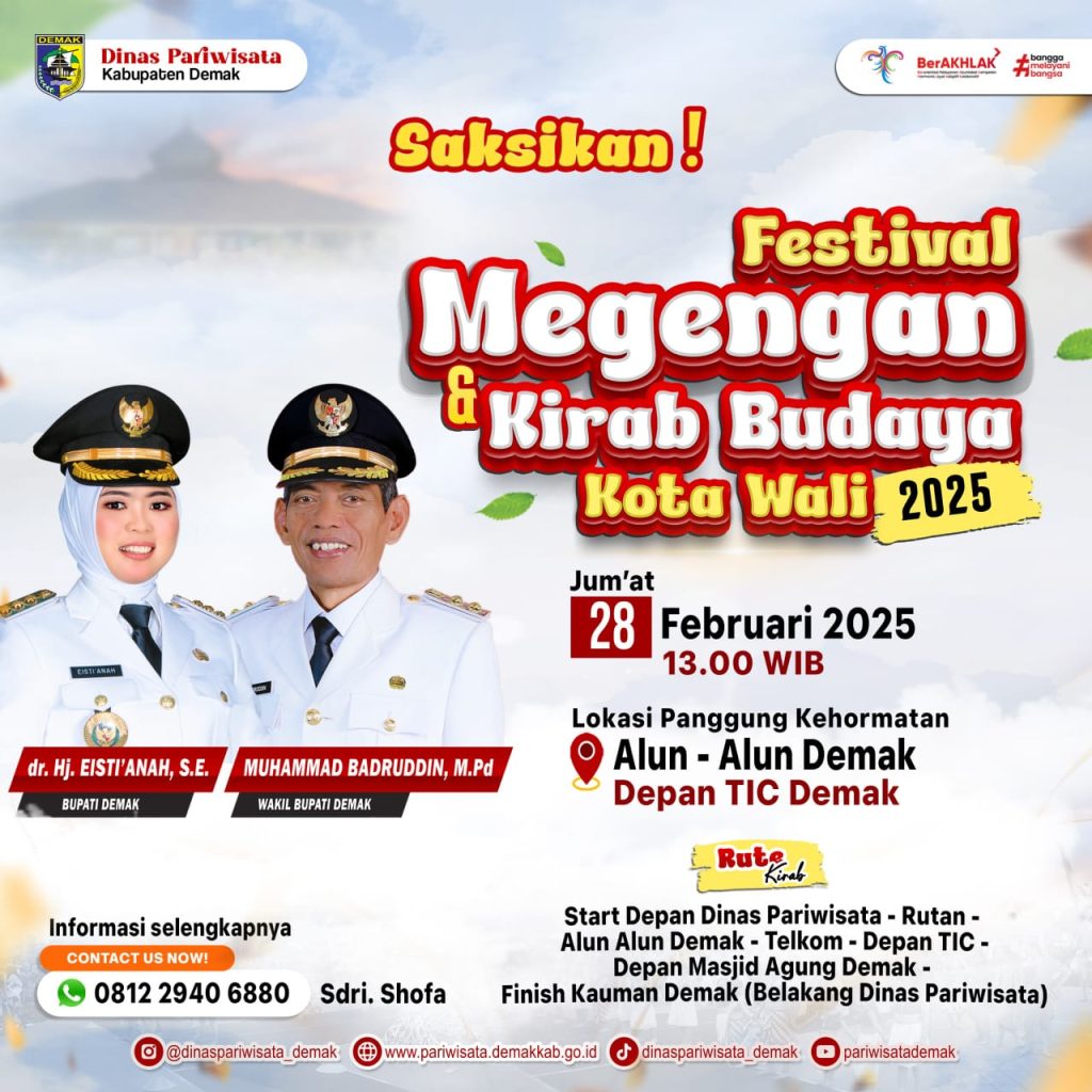 Demak- Dinas Pariwisata Kabupaten Demak sukses menyelenggarakan kegiatan festival megengan dan kirab budaya Tahun 2025. Kegiatan yang dilaksanakan hari senin (28/2/2025) di depan TIC “ tourism information center” pada Kawasan Pujasera Alun alun Demak berjalan meriah dan lancar.Kegiatan Festival megengan dan kirab budaya kota wali dilaksanakan dalam rangka menyambut bulan suci ramadan dan berbarengan dengan […]