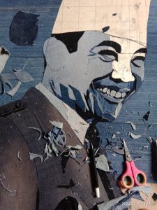 Berbagai material digunakan dalam proses berkarya, seperti pelepah pisang, cangkang telur, arang, cat di atas kanvas, hingga kain jeans. Perpaduan bahan yang tidak biasa tersebut menghasilkan karya berkarakter dan berbeda dari yang lain.